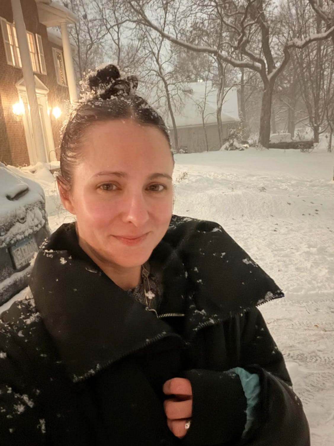 It feels so good to stand in awe Jaw slack eyes wide Taking in a magical moment simply Standing in my driveway Kids laughing around me Something as simple as falling snow Taking my breath away The way it tumbles from the sky Effortlessly Coating my dark hair in crispy white Tiny miracles land in my hand and On my tongue The cold may be nipping at my nose But it can’t tear me away from this masterpiece